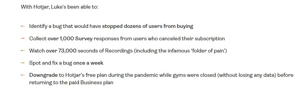 After you explain the implementation of your SaaS product, then you need to discuss the results (yes, again). Use numbers and percentages, like Hotjar does.